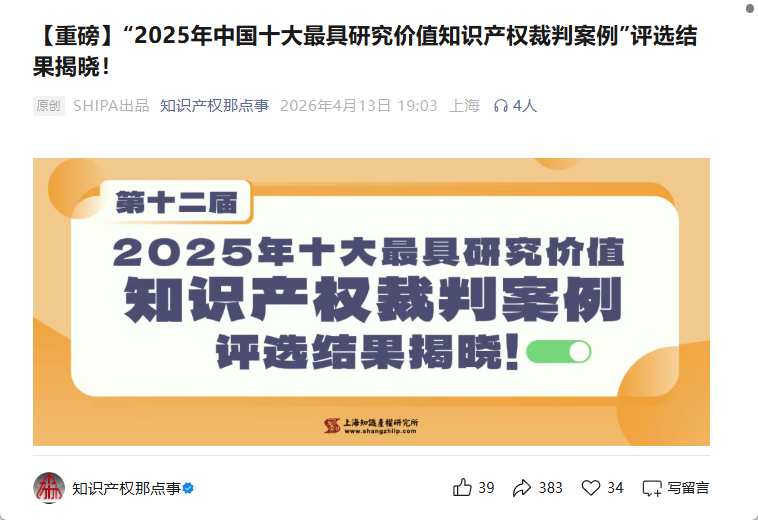 【重磅】“2025年中国十大最具研究价值知识产权裁判案例”评选结果揭晓!